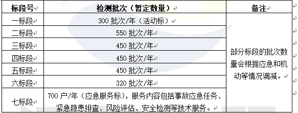 上述所列檢測(cè)批次為暫定數(shù)量,僅作參考,供應(yīng)商必須充分考慮價(jià)格變動(dòng)和實(shí)際檢測(cè)批次的風(fēng)險(xiǎn),合同采用固定單價(jià)形式簽訂,最終按實(shí)際檢測(cè)批次及戶數(shù)進(jìn)行結(jié)算。